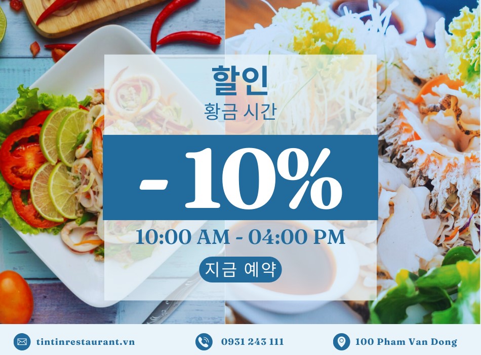 TinTin Seafood Restaurant Da Nang is excited to announce a 10% discount on the total bill for customers who make a reservation through Google...
