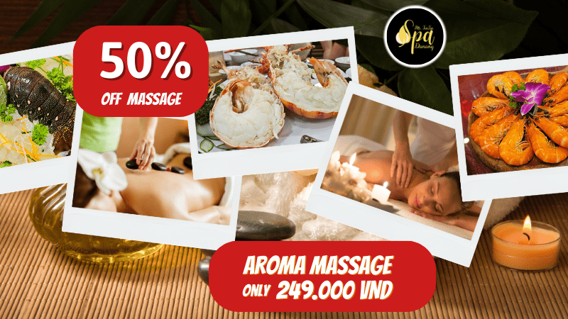 Chỉ cần dùng bữa ở TinTin Seafood & Spa - nhà hàng hải sản ngon nhất Đà Nẵng bạn sẽ nhận ngay ưu đãi GIẢM NGAY 50% GIÁ MASSAGE TẤT CẢ CÁC GÓI không kể giá trị hóa đơn!