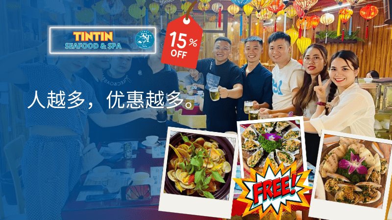 快来岘港TinTin海鲜Spa餐厅,享受高端美食,并获得免费乳蚝赠送优惠。这是与家人和朋友共度难忘时光的绝佳机会。不要错过这个机会,立即预订餐桌,享受TinTin餐厅带来的美好服务吧!