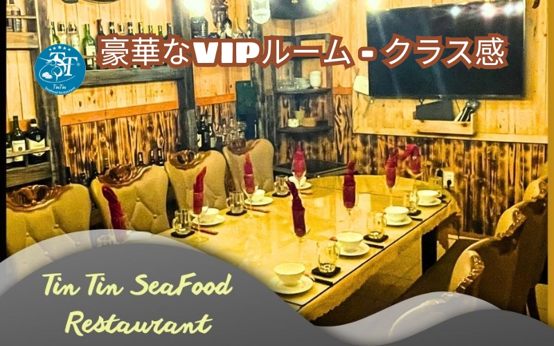 Phòng vip ở TinTin seafood Restaurant Da Nang mang nét kiến trúc hiện đại lại pha lẫn chút cổ điển, tạo nên sự sang trọng để lại điểm nhấn trong lòng du khách. Không gian được trang trí bằng gỗ kết hợp với những kiến trúc của dân tộc Việt Nam, mang đến cảm giác ấm cúng và gần gũi. Ở phòng VIP của nhà hàng còn có hệ thống âm thanh, ánh sáng hiện đại, phù hợp cho mọi sự kiện.