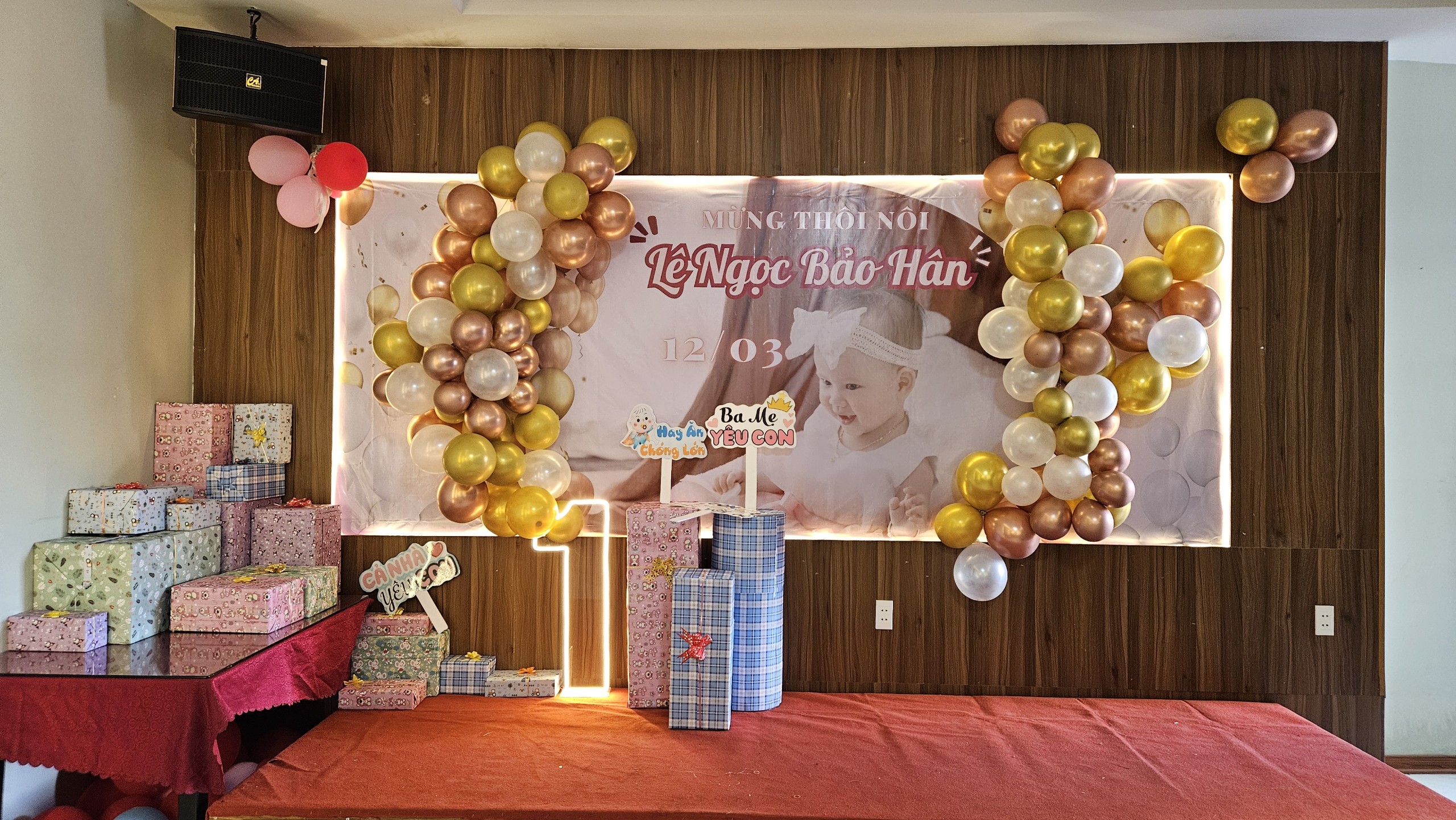 - Background: Chúng tôi thiết kế background riêng cho từng buổi tiệc với đội ngũ thiết kế (design) vô cùng chuyên nghiệp, đầy thẩm mỹ.