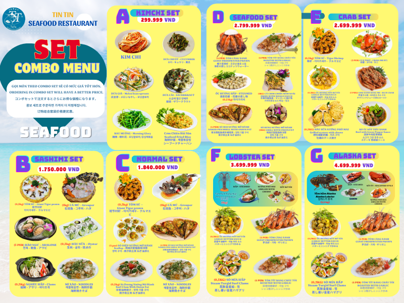 Nhà hàng hải sản Tin Tin tự tin là điểm đến lý tưởng cho thực khách với với nguồn thực phẩm tươi sống và không gian trang trí đẹp mắt, bên cạnh đó nhà hàng còn cung cấp các set menu ưu đãi đặt biệt cho khách hàng lần đầu tới nhà hàng. Đặt biệt những ngày lễ hội pháo hoa thực khách có thể trực tiếp ngắn pháo hoa và thưởng thức hải sản một cách thoải mái.